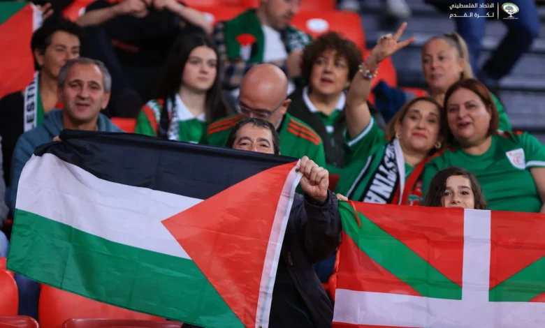 تحولت المباراة الودية التي جمعت بين منتخب فلسطين وإقليم الباسك على ملعب سان ماميس في مدينة بلباو الإسبانية إلى حدث للتضامن مع الشعب الفلسطيني، حيث ملأت المدرجات بالأعلام الفلسطينية، مما يعكس دعم الجماهير للقضية الفلسطينية في ظل الظروف الإنسانية الصعبة التي يواجهها قطاع غزة.