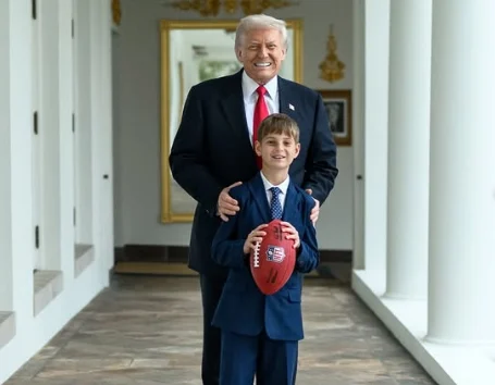 نشر البيت الأبيض صورة عبر منصة إنستجرام، تظهر الرئيس الأمريكي دونالد ترامب وهو يقضي وقتًا ممتعًا مع أحد أحفاده أثناء جولة في الممر الخاص بالمكتب البيضاوي.