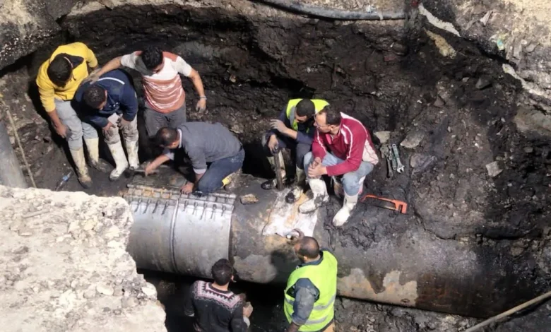 استئناف إمدادات المياه بعد إصلاح كسر خط المياه بقطر 1000 مم أمام مستشفى أم المصريين